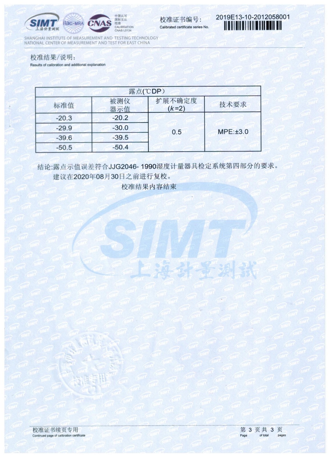 測(cè)量范圍:露點(diǎn)-80℃~+20℃(支持ppmv等)